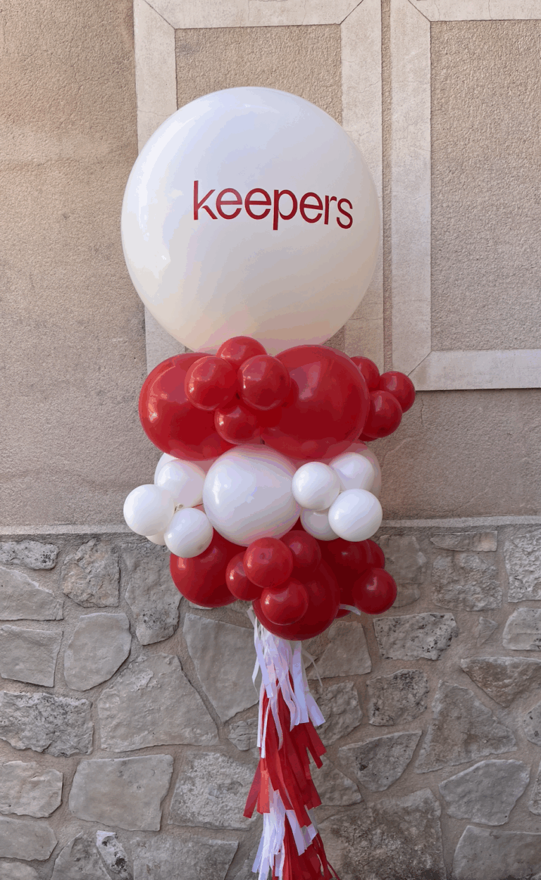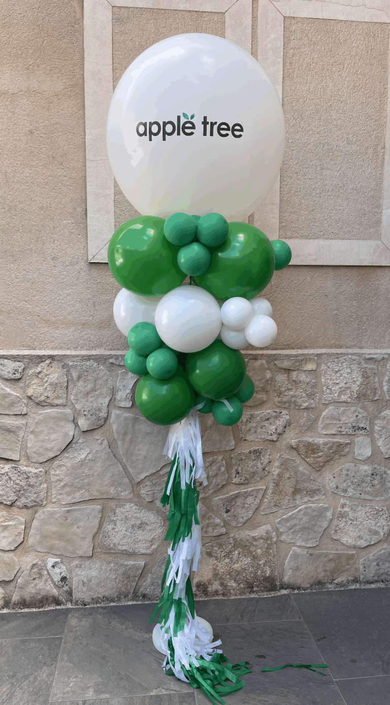 Columnas de globos personalizadas, globos de helio y guirnaldas de globos decoraron varios espacios de la empresa Suntory para celebrar su evento empresarial.