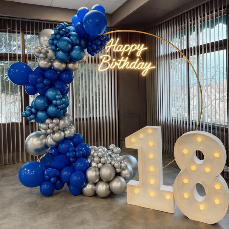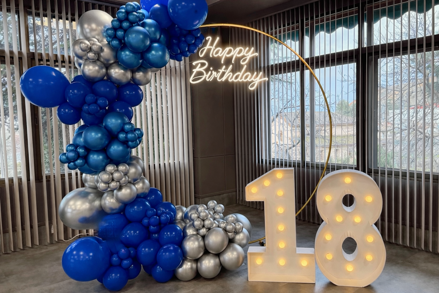 Los 18 de Paula fue una fiesta donde no faltó ningún detalle, globos de helio decorando el espacio de la fiesta, con una tarta espectacular de bonita y dos carritos, uno dulce y otro salado con todo personalizado con la temática de la fiesta.